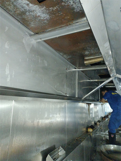 清洗过的烟道确保烟道内没有油污。排气扇扇面洁净,表面干净光洁。