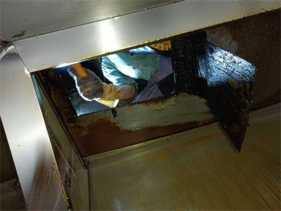 清洁内容包括烟罩表面、烟罩内面、进风口风机、排风口风机、树立大烟囱。清洁重点部位是烟罩内侧、排风扇、油烟机上方是烟道内面。我们将重点对平行烟道内部进行彻底清洁。采用的主要方法主要是人员进入烟道内部进行清洁。我公司拥有高压清洗机器、高温高压蒸汽机、自吸泵以及各种手工和电动工具,其特点是:对于排烟口窄小,人工无法进入烟道或烟道本身复杂、狭窄、人工触及不到无法进行清洁但又存在着重大隐患的地方,我公司可利用专用设备进行清洁,不留死角,打消客户的疑虑和担心,消除一切潜在的火灾隐患。